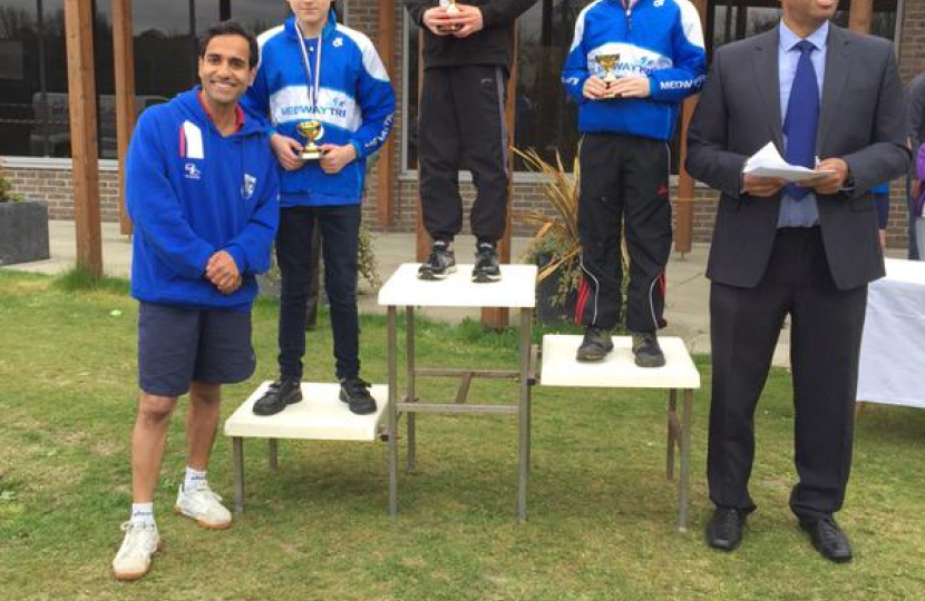 On Sunday (19 April 2015) Rehman presented the prizes to the young winners of the Medway Tri 1 and 2 races at Medway Park.