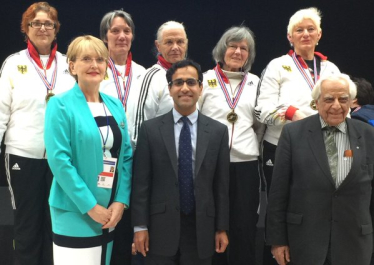 Fencing championships 5th May 2016 Rehman presented the medals to the winners of the European Veterans Fencing Team Championships at Medway Park. Local News