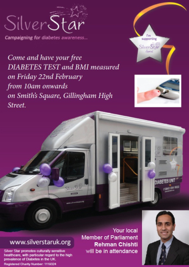Get tested for diabetes in Gillingham 15th February 2013 On Friday (22 February 2013) Rehman will be raising awareness of diabetes in Gillingham High Street from 10am onwards where the charity Silver Star will be on... Local News