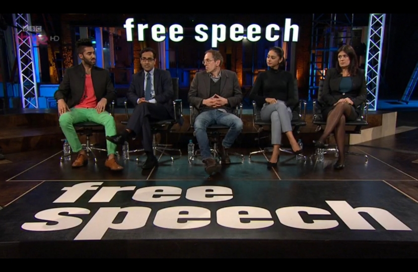 On Tuesday (18 November 2014) Rehman took part in the live debate and discussion programme, Free Speech on BBC 3.