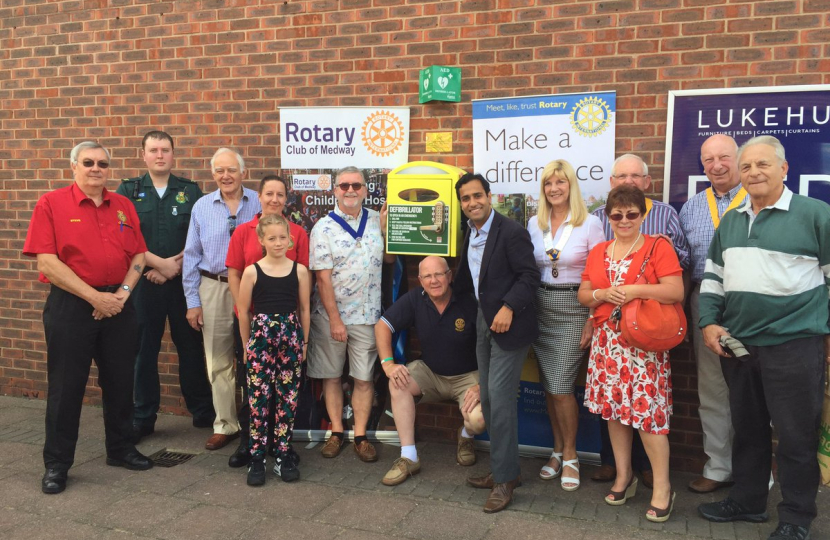 On Friday 22nd July, Rehman unveiled a new defibrillator on the premises of Lukehurst furniture store in Rainham. The addition of this vital piece of equipment was made possible thanks to the Rotary Club of Medway.