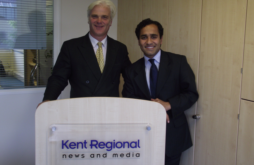 Desmond Swayne MP who is David Cameron’s Private Parliamentary Secretary visited Gillingham and Rainham on Friday.  Mr Swayne, accompanied by Rehman Chishti, visited Medway News where he was interviewed by local reporter Max Evans.  He then attended a Conservative dinner as guest speaker at Mid Kent College.  Mr Swayne thoroughly enjoyed he visit to Medway and paid tribute to the hard work of local MP Rehman Chishti.