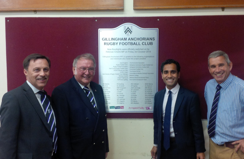 Rehman had the honour of switching on the Rugby club’s new floodlights on Friday (3 October 2014).